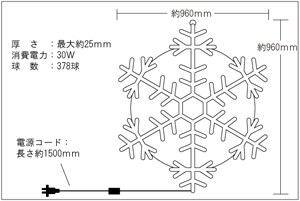 | 商品名 | LED2Dロープモチーフ、トゥインクルスノーフレーク、96cm、ホワイト+ホワイト点滅 |