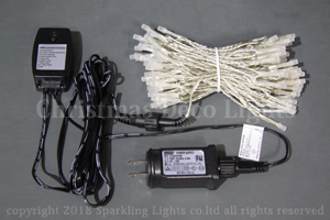 電飾部分はDC5V仕様ですがAC/DCアダプタが付属していますのでご家庭の100V電源(コンセント)で点灯可能です。