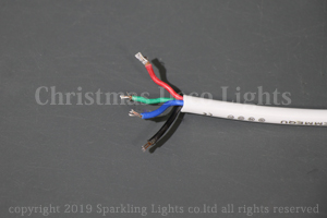 リードケーブルは DC24V+, R, G,B の 4芯先バラ線になっています。DC24V出力に対応した RGB3chコントローラ(別売)と接続してご使用ください。