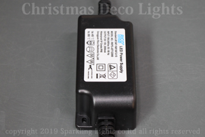 | 商品名 | 防滴型AC/DCアダプタ、DC12V、2A、24W(ネジ式樹脂コネクタ、ミニオーバル型スノーフォール/12Vフェードストリング/R2単色テープライト用) |