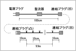 | 長さ | 全長約11.5m 灯体部分:約10m(LEDの端から端は9.9m) 電源コード:約150cm |