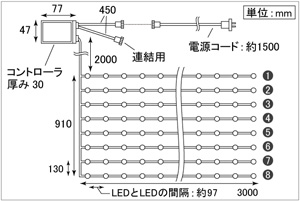 | 商品名 | LEDイルミネーション、ウオーターフォールカーテン(ナイアガラ)、上下方向点滅、プロ仕様(V3)、256球、シルバーコード、電球色(イエローゴールド)/ホワイト |