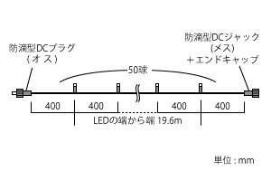 | サイズ | 全長:約20.4m LEDの端から端:約19.6m LEDのピッチ:約40cm |